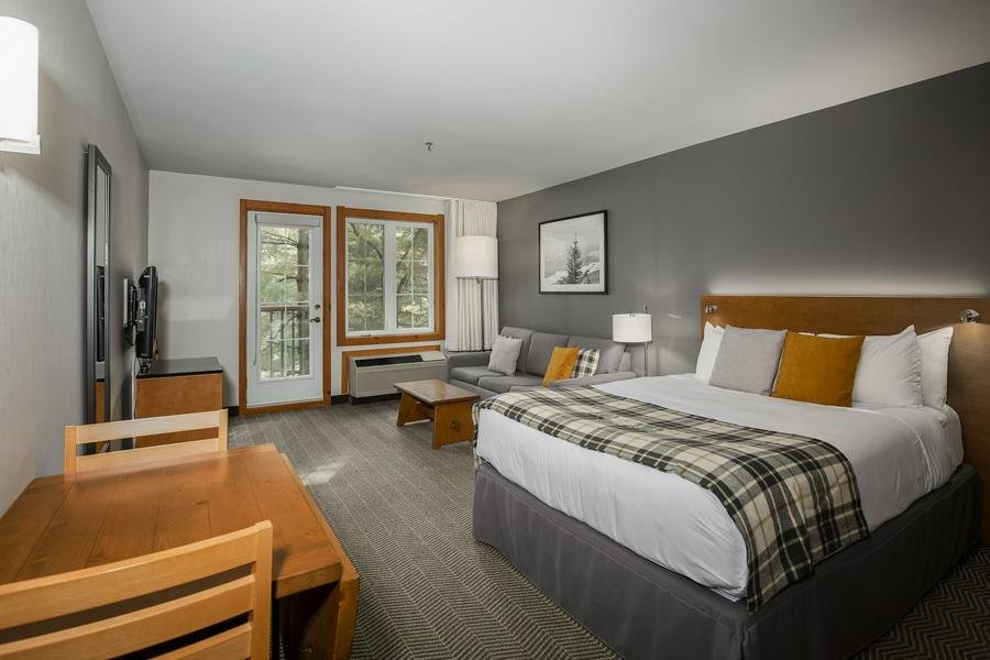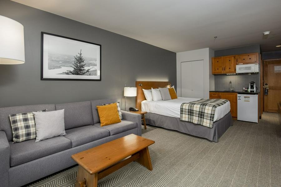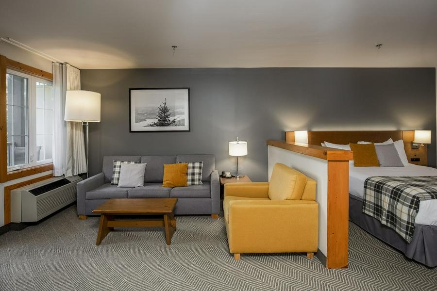 Nestled in a rustic mountain setting with modern comforts, this welcoming hotel offers spacious rooms, studios, and suites (many with kitchenettes), plus amenities like a seasonal outdoor pool, hot tubs, sauna, and game room—ideal for relaxing after a day on the links. Its prime location in the pedestrian village provides easy access to everything, while being just a short 3-minute drive from the renowned Le Diable and Le Géant golf courses, two spectacular 18-hole championship layouts featuring stunning mountain views, challenging bunkers, and pristine fairways.